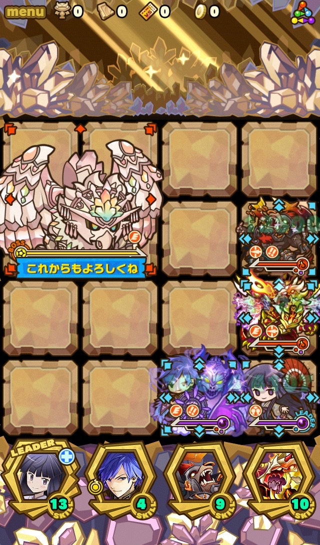 …思えば、災獣シリーズのジーラ光PTから始まり、ウィンディーネ水PT、☆7が開放されてから初めての11連で引いたヤタガラスPT、2度目の11連でイシスとマールスを引きアタックPTの時代へ。モンスターも揃ってきて、顕現も攻略見ずに自力でノーコン出来る程にもなりました。改めてこの2年を振り返ると本当にしみじみしています。