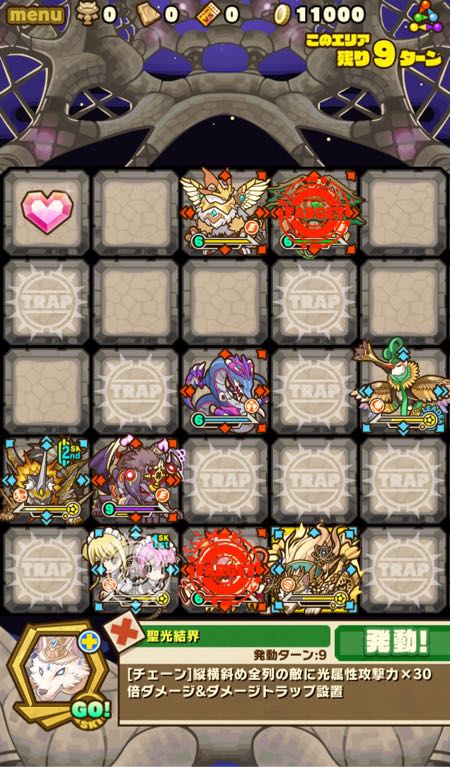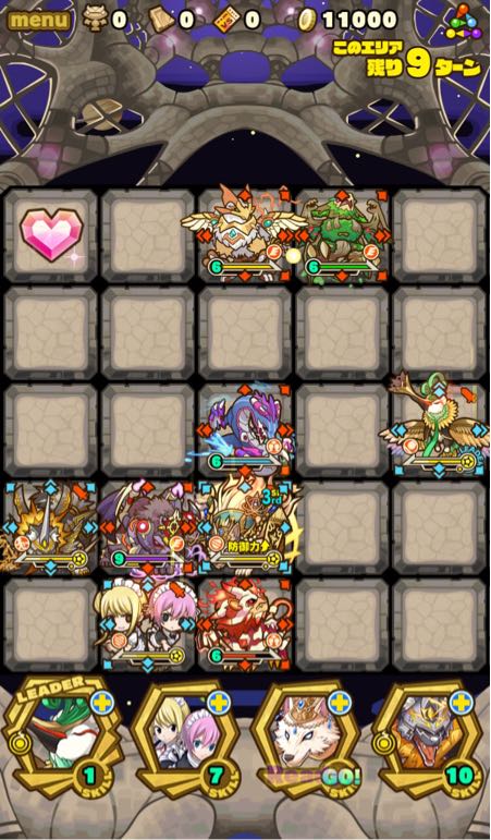 ……ついに来た。第十一層。最上層までもうすぐ。何回もプレイしてあーでもないこーでもないって言って編成して、これだ!って思ったPTでずっとやってるけど、、……運ゲーだ!!本当に!!こうしたら勝てるっていうのは分かっているのに、ムズムズする第十一層!!