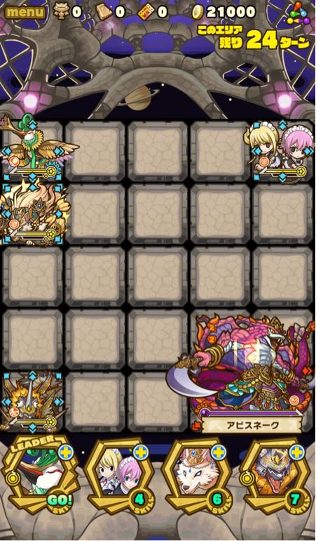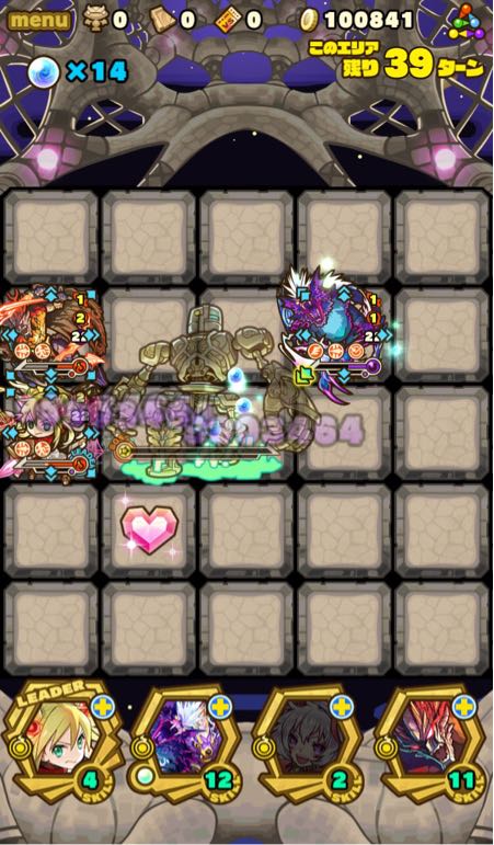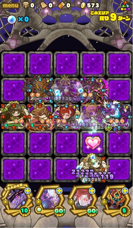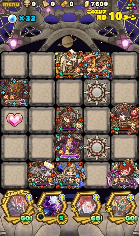 向かってくる雑魚を倒しても、無限に湧いてくるし、スキルを使うと呪い状態にされ毎ターンかなりのダメージを受け続ける。なので、毎ターン回復やダメージ軽減など、耐久力があり反撃の攻撃力の倍率が高いカウンターPTが最適なのかなと思いました。あとハートを全体化持ちで取っていく事がも必要。