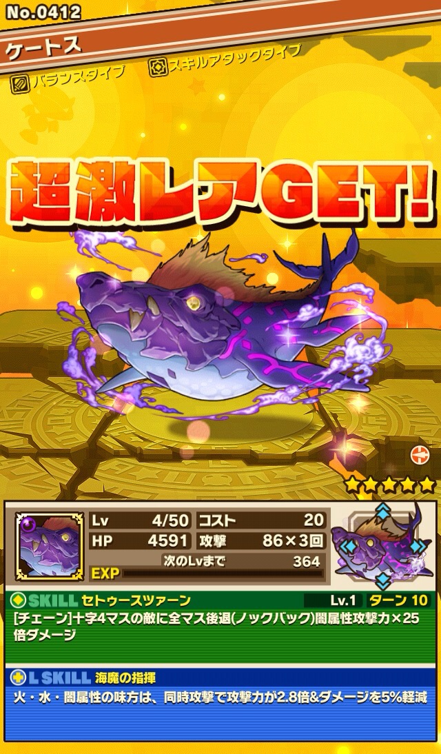 4回目!ケートス!4体目!(スキルLv.上がらず)