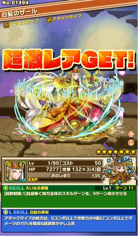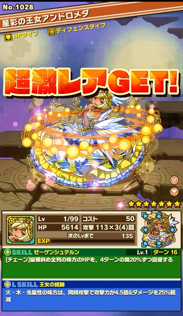 レプティアス!!覚醒で15倍エンハを持つアタッカー。欲しかったからめっちゃ嬉しい!ちなみに、サモンズボード史上一番最初のフェス限モンスターでもある。3周年の今手に入った事がタイミング的に嬉しい笑