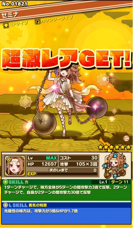 ペレ!スキルマにすると毎ターン1500回復するけど、8上げだから厳しいかも。あとHPタイプ限定なのが微妙かなあ。リーダースキルはめっちゃいいけど、攻撃倍率もっと欲しい。