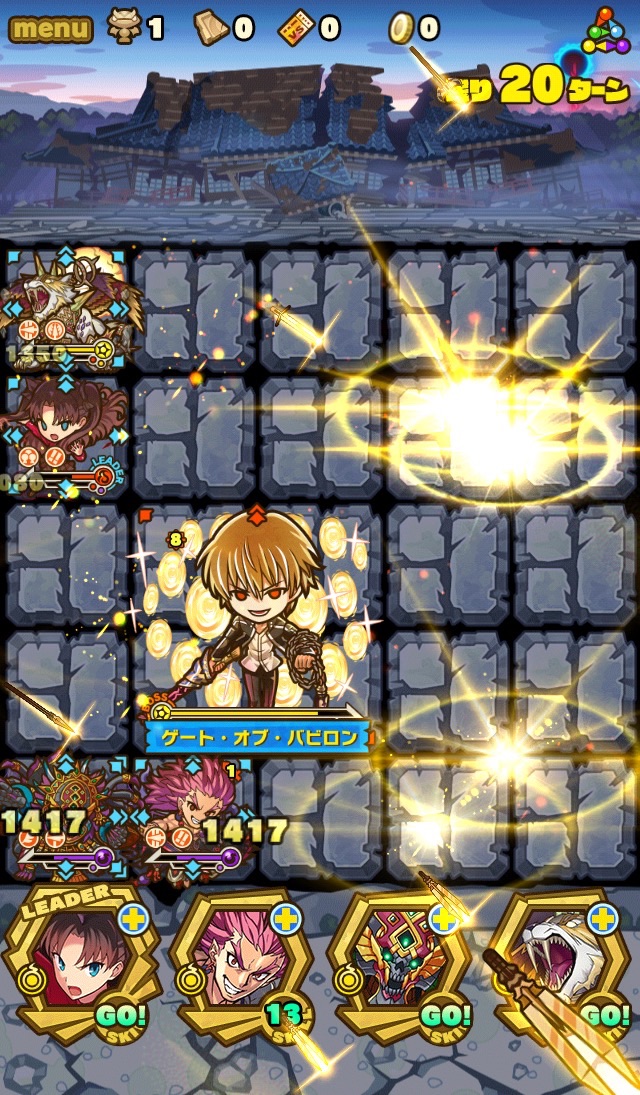 このゲート・オブ・バビロンに散々悩まされてきた。けど、ここでスキルダメージ70%減が輝く!なんと1417しか受けないwwこれは、行ける!!!!