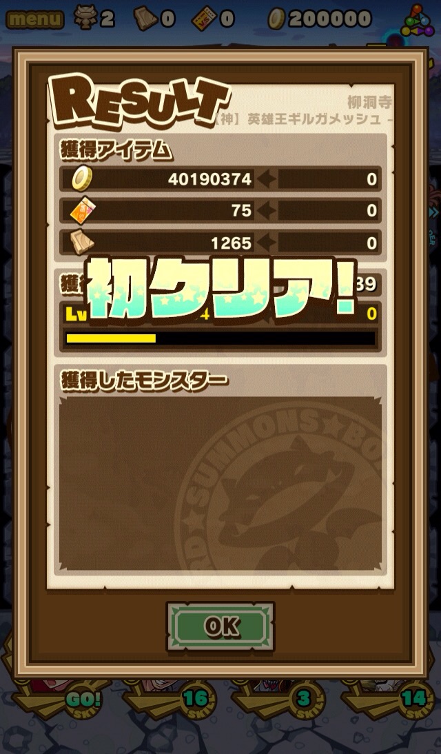 ギルガメッシュ、倒せた。。。どっと肩の荷が降りた感じ。