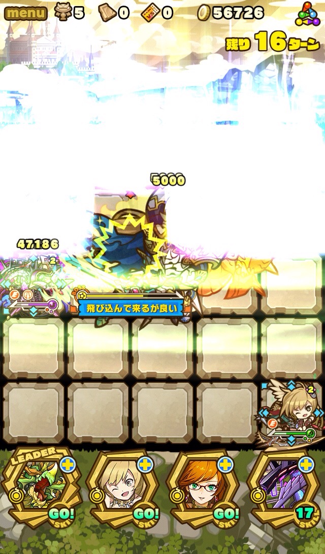 ダメージは5000×2。下手したらやられるから、事前に倒されないようにHPは減らさないように注意しておく。