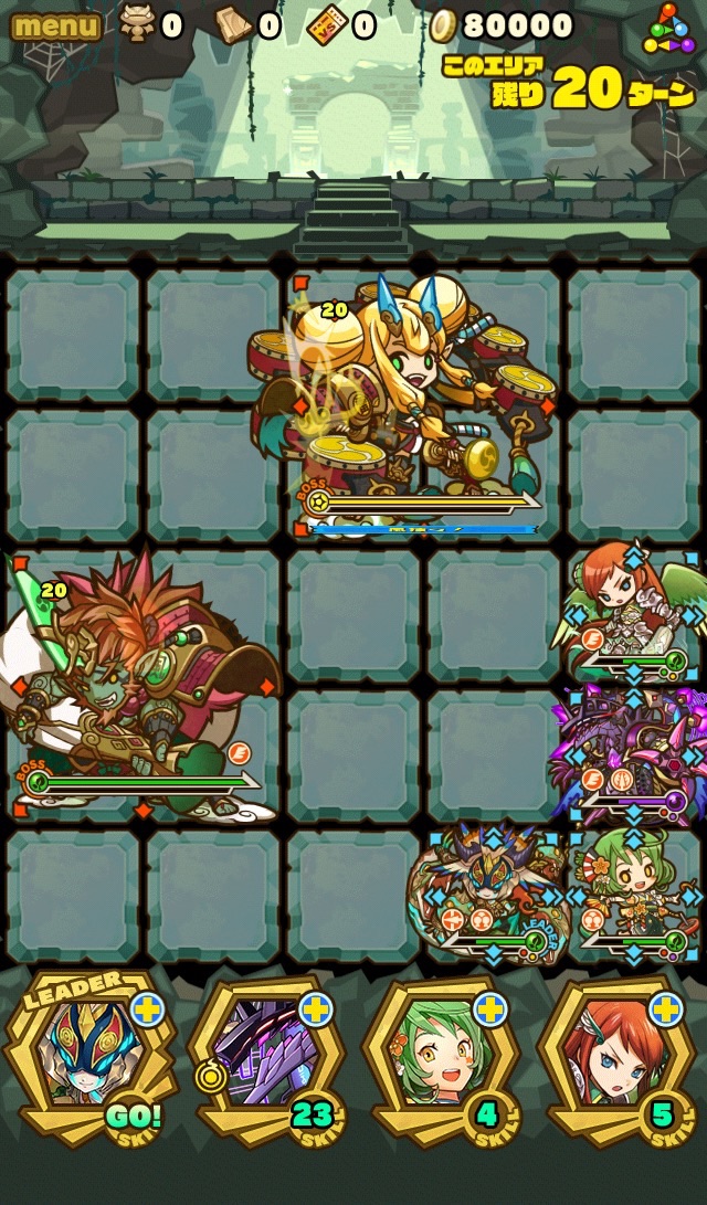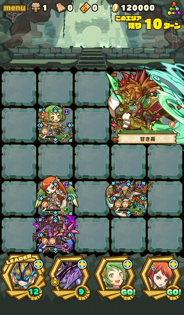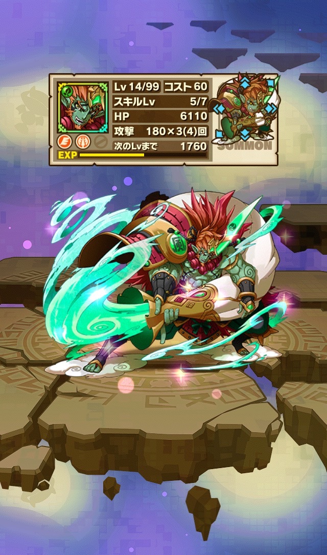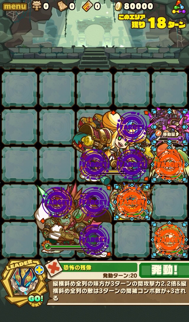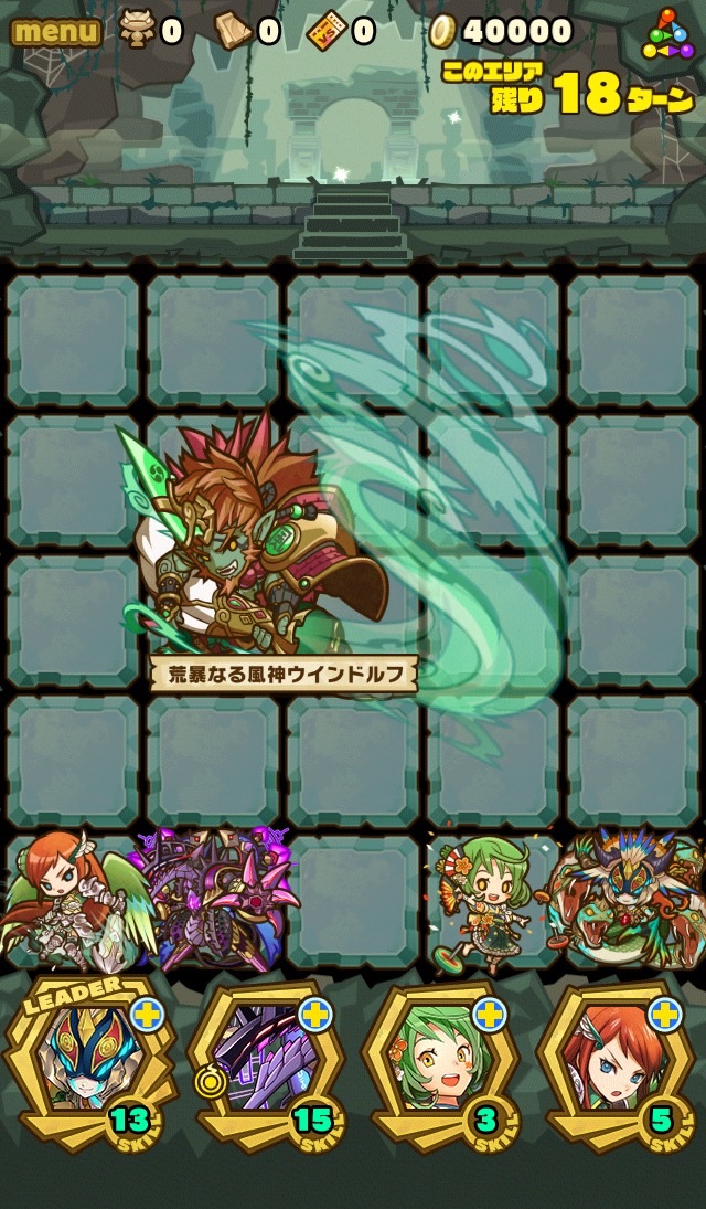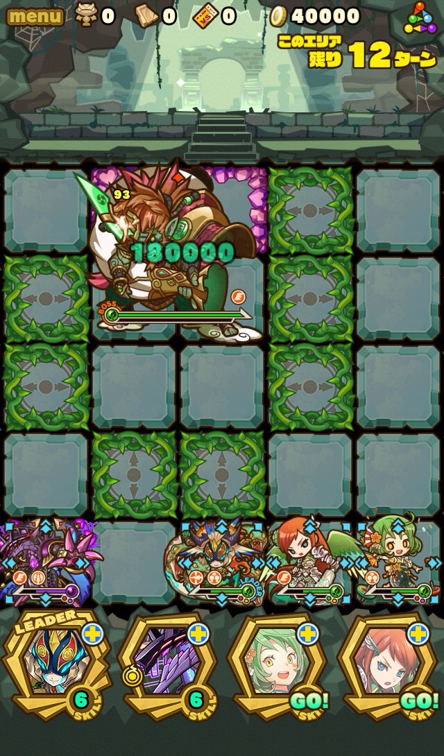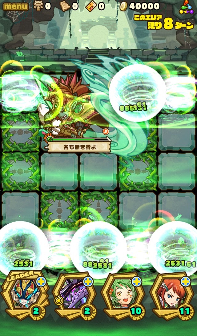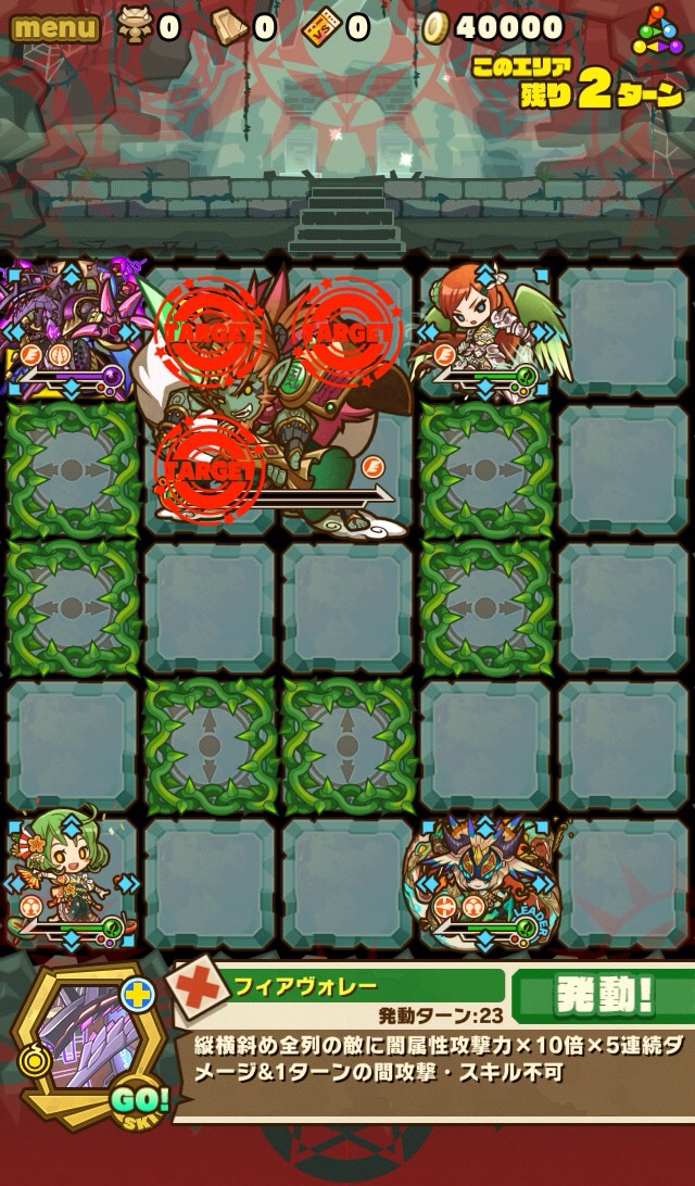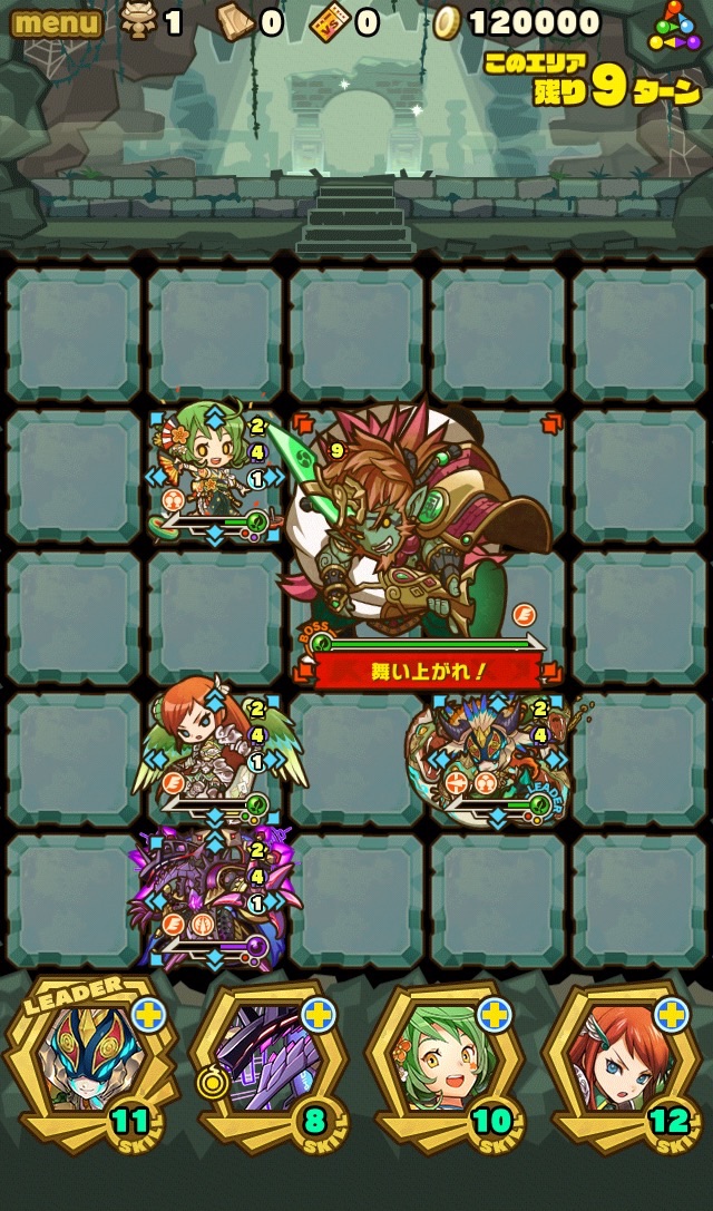 先制でスキルダメージ減を使ってくる。コアトリクエは7コンボ以上で木とHPタイプの攻撃力4倍、スキルダメージを60%減。ダメージスキルをばんばんぶっ放してくるため、この軽減は本当に助かった。