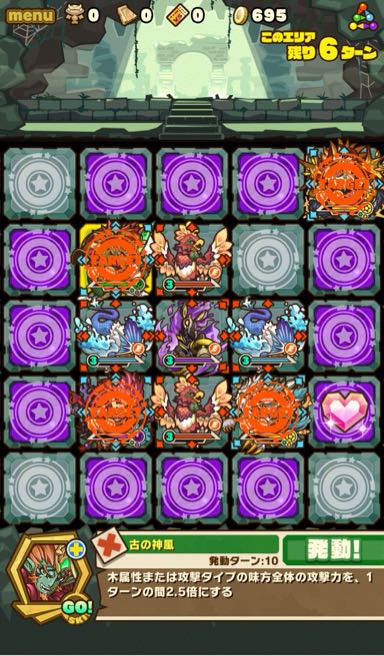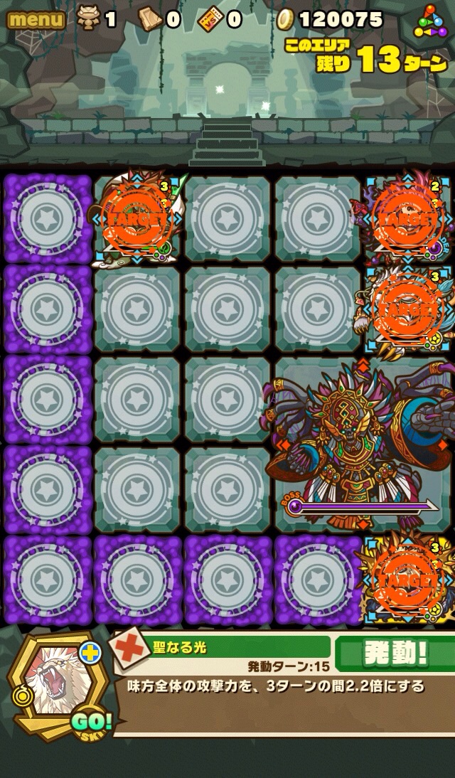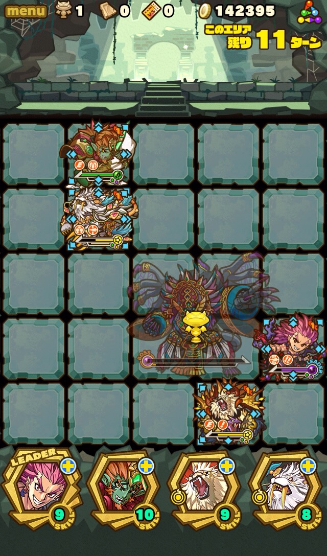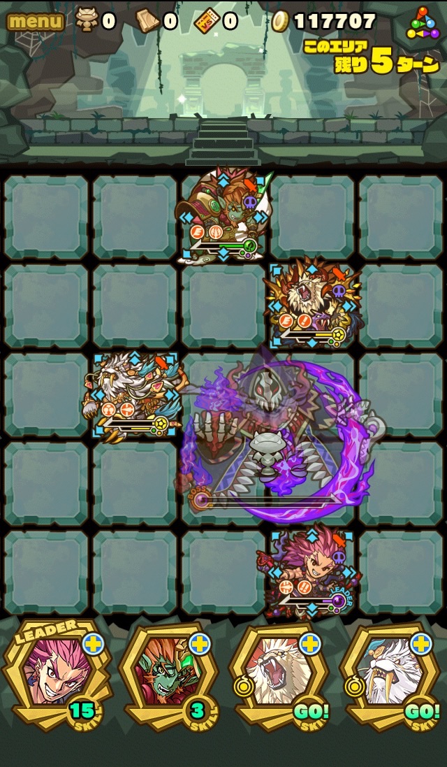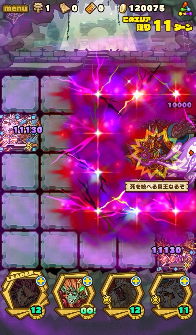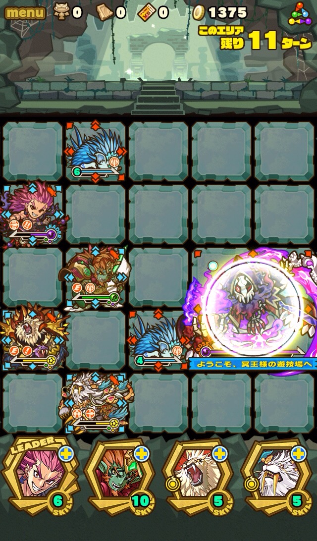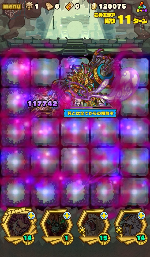 そして、残り7ターンになると十字列に毒。これを出来れば食らわないように配置したい。ランダム配置なため、全員が回避するのは難しい。