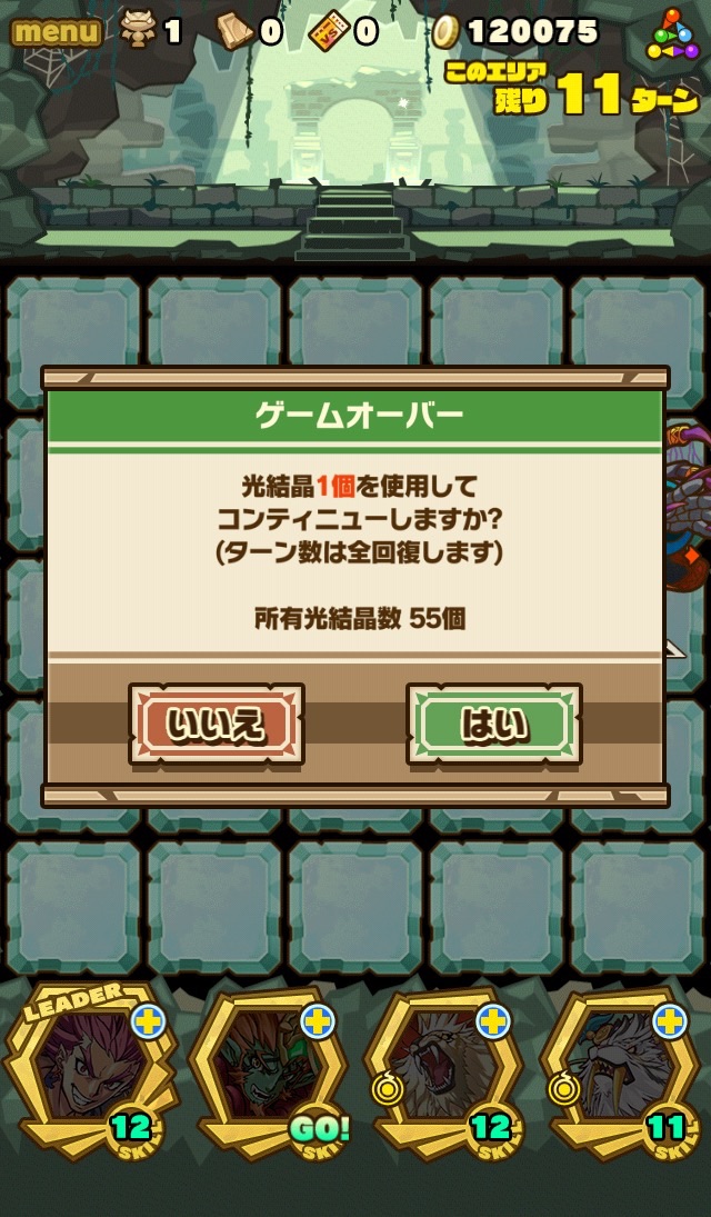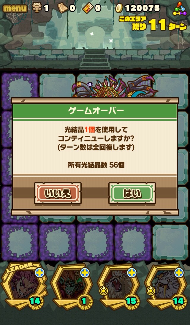 この記事を書く前に、ありとあらゆるPTで挑んでみた結果、ノーコンは無理!!!という結論に至りましたww 今日の深夜2時頃、初クリアした時は1コンでした。貯めてた石57個あって、11連をやりたかったから10個くらいなら使ってもいいかなという思いで割りきって周回しました。