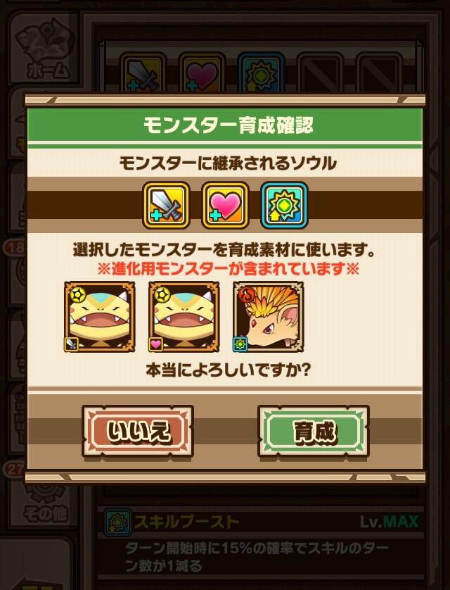 6体合成で一気にスキルマまであと1に!!長期戦を覚悟してたけれど、案外早くスキルマ出来るかも!