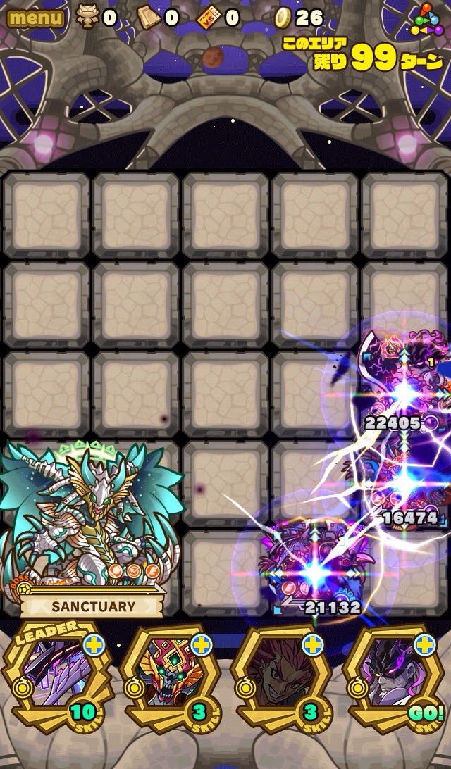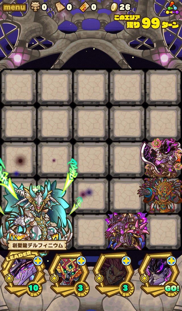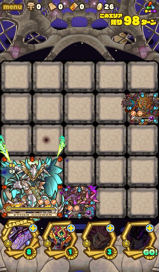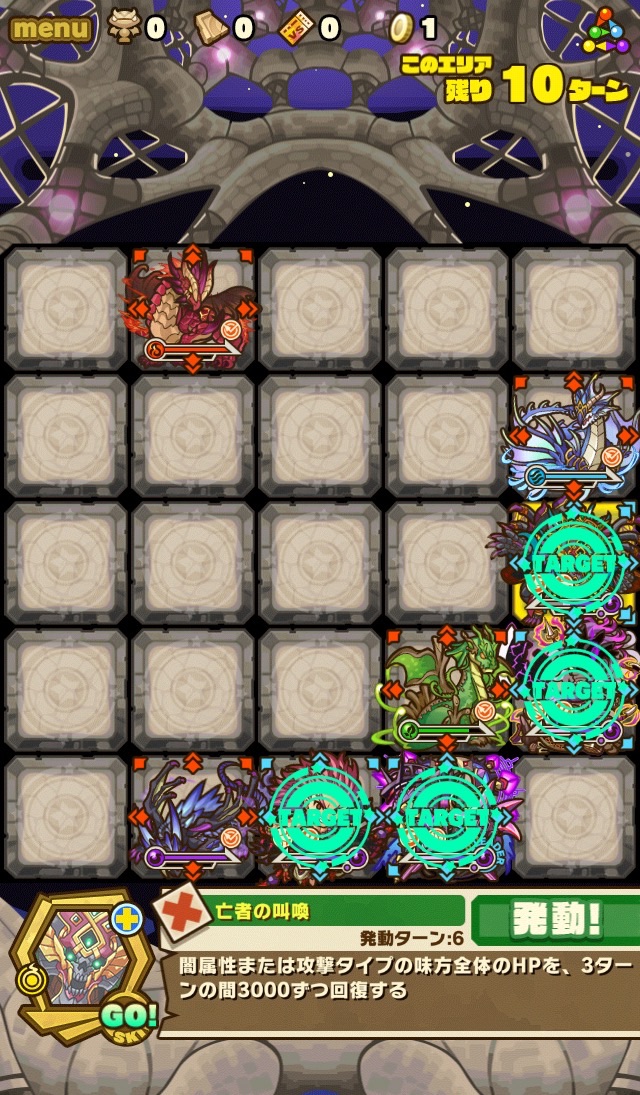 先制で闇モンスターのHPが99%減らされる。前のエリア突破直前に、ミクトランテクートリの回復を使って突破しないと厳しい。