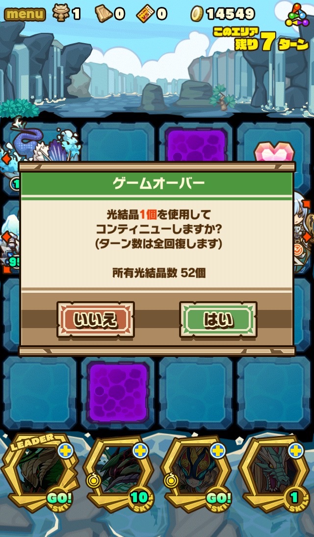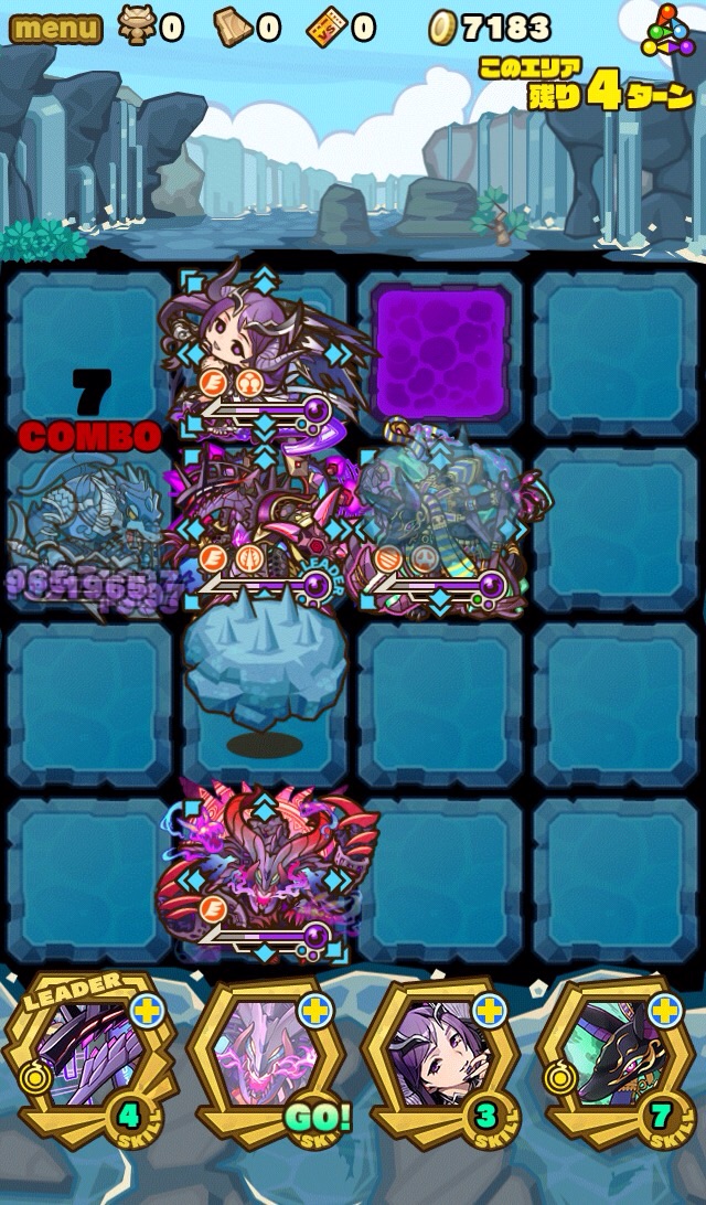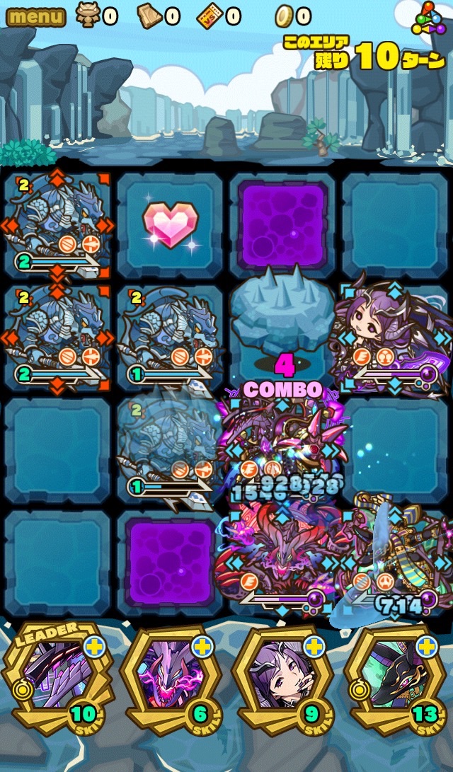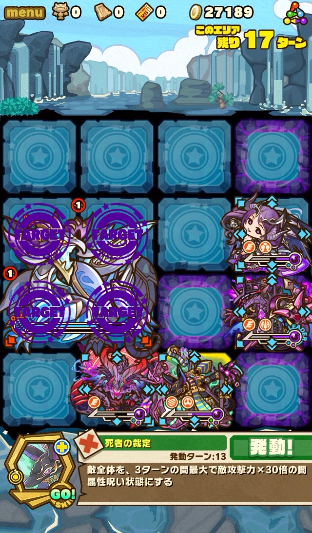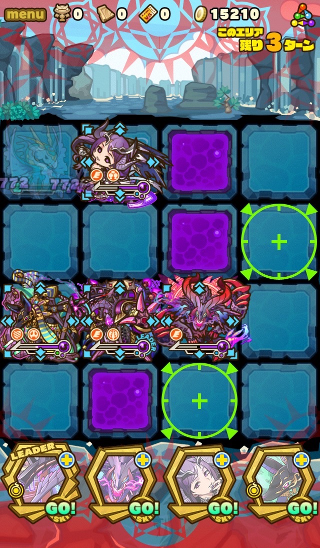 …このダンジョン、むずいっす!!!!もはや顕現並じゃないか……汗 何度もターンオーバーやゲームオーバー負けして色々編成変えて挑戦。