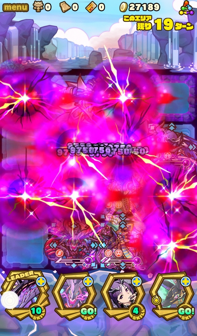 ってそこまで減らせないか。。割り込みスキルで攻撃力アップ。1発が結構痛いから食らいたくない。
