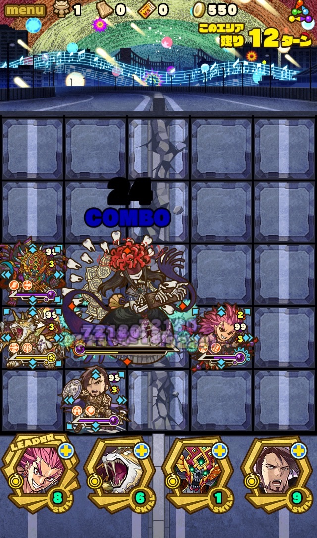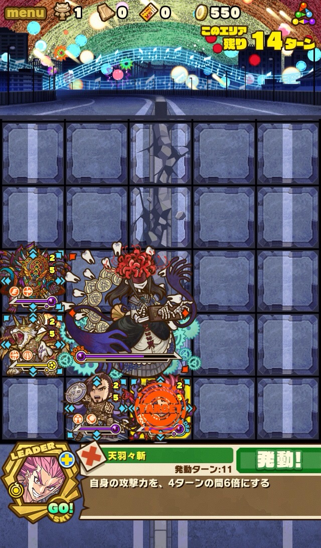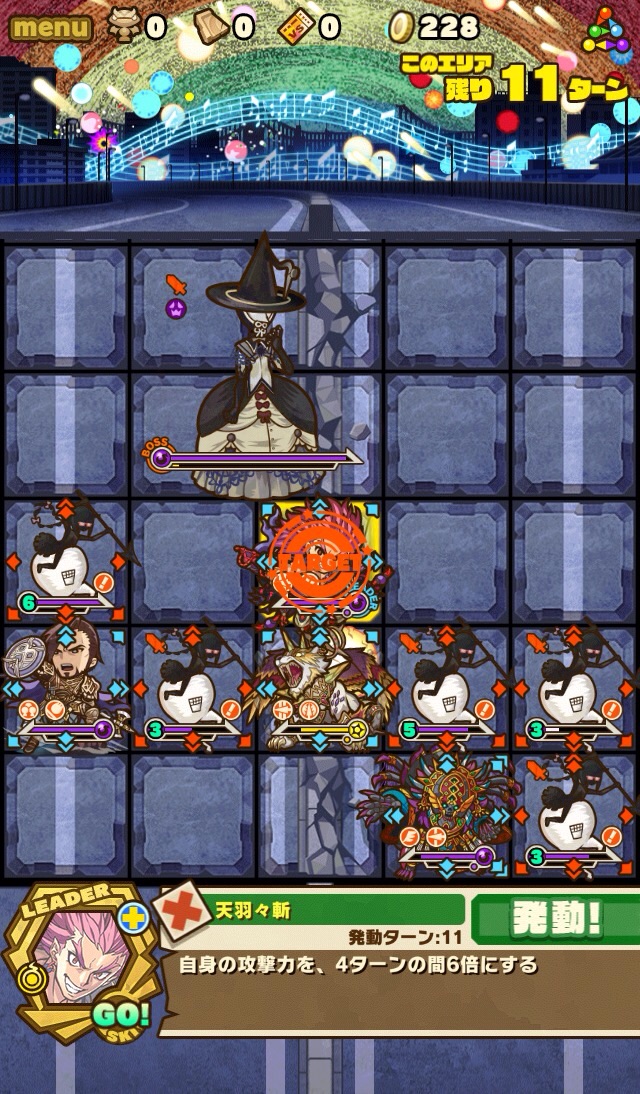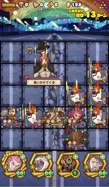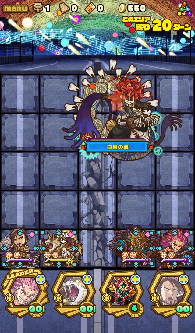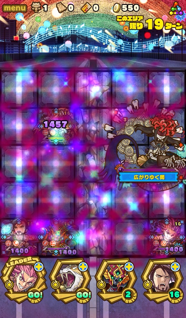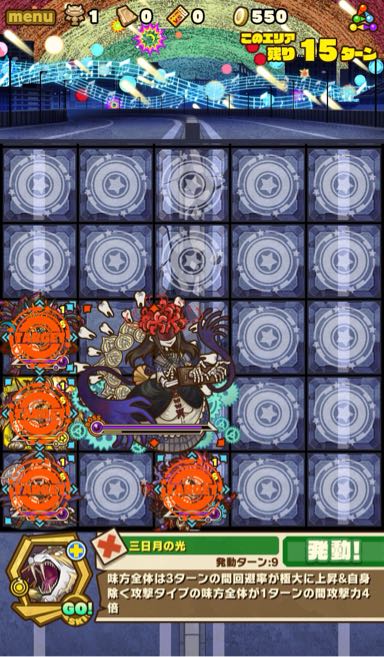 何ターンか経つと、割り込みスキル。ボスは呪い状態、全体の攻撃力をアップしてくる。