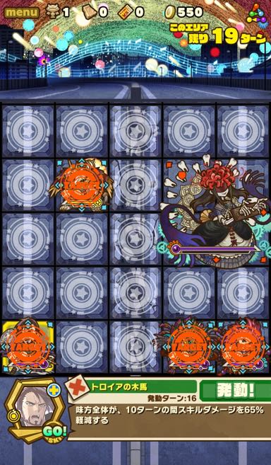 この彼岸花、ダメージスキルがかなり強力で、まともに受けてられない。そこでオデュッセウスのトロイアの木馬!スキルダメージ65%減が10ターン続くのは強い。こいつが居ないとこの
