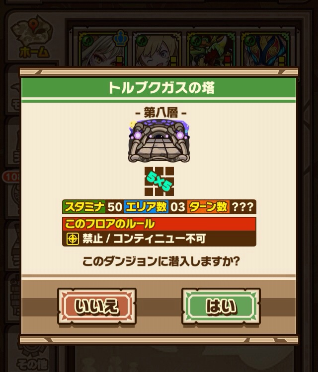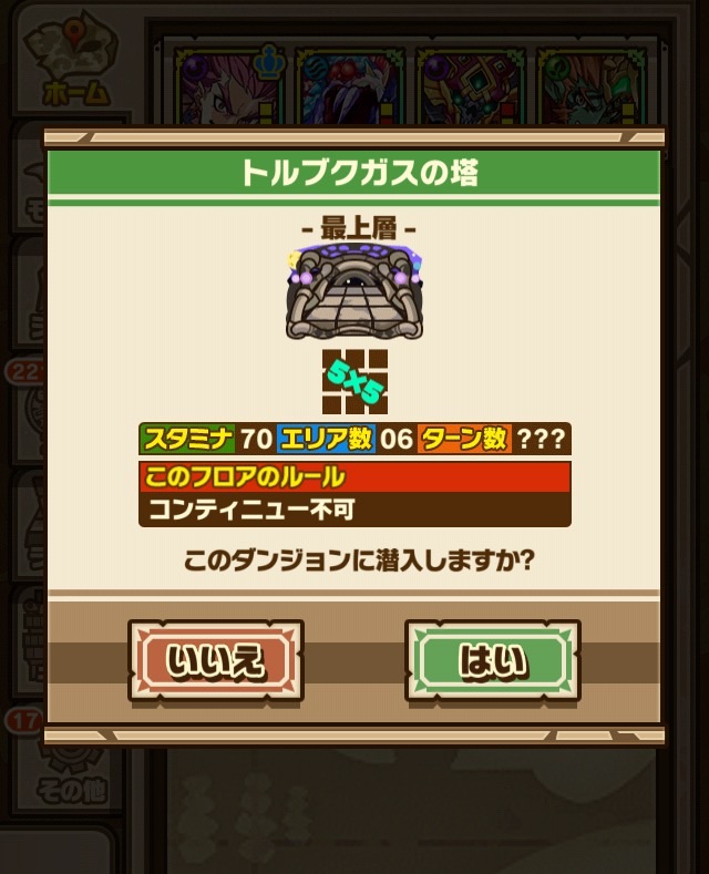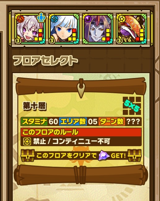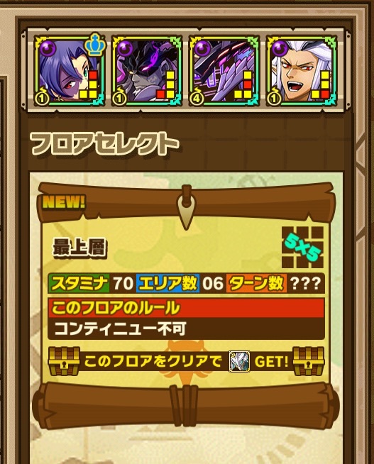 ここまでクリア出来て、残すは最上層のみ。次の最上層は本当にPTが揃ってないとクリア出来ないステージ。無理だと分かっていても、記念にどこまで行けるか挑んでみた!