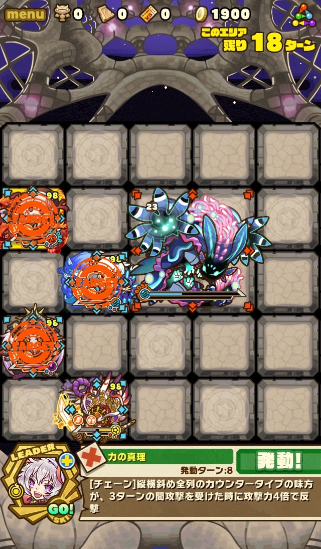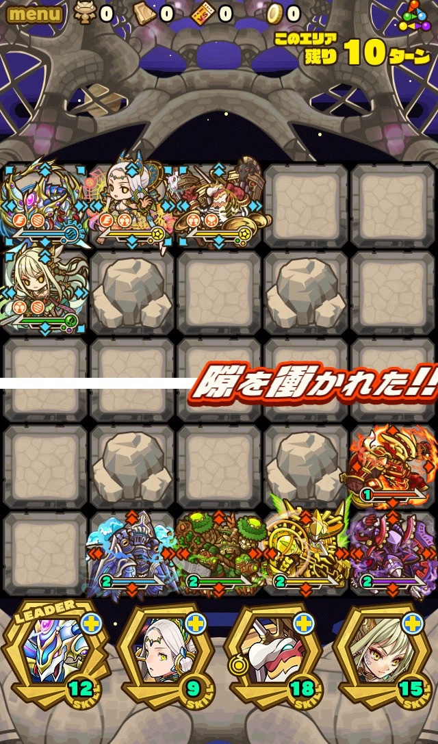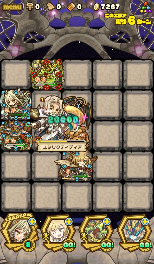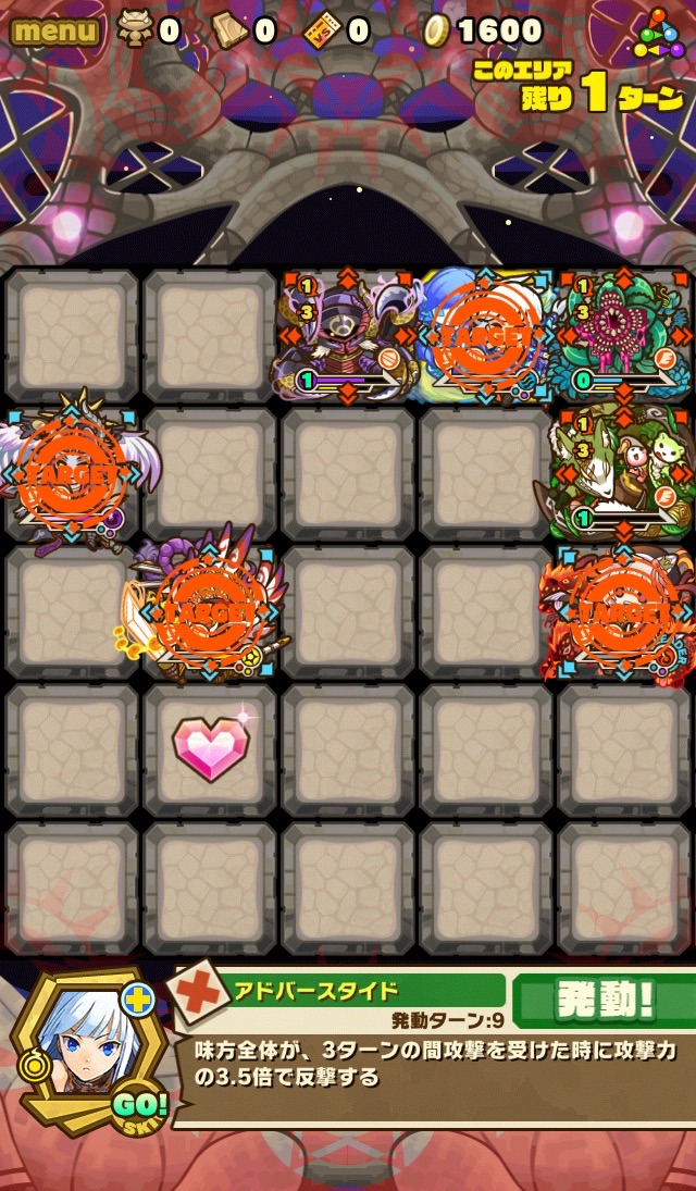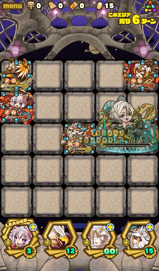 …どうやら、スキル封印を1体入れたカウンターPTが一番良いとの事。ペルセウスをフレーズベルグと変えて、行ってみたもののなかなかうまく行かず、それでも諦めず今朝あとスタミナと時間的に2回しか挑戦出来ない中、遂に、ここまで万全の状態で来た!!!